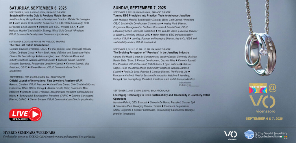 Launched in April 2020, during the early days of the COVID pandemic, Jewellery Industry Voices evolved from a forum focusing on coping with the impact of the global health crisis into an agenda-setting webinar and seminar series that tackles all important issues challenging the jewellery, gemstone and precious metals sectors.